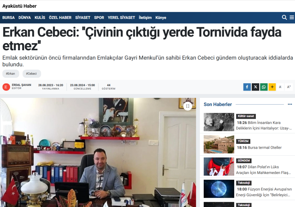 10.06.1981 Tarihinde Bursa’da Doğdu Babası Milli Pehlivan Mahmut Cebeci Armutludur Merinos Fabrikasında Usta Başıdır. Erkan Cebeci ilk ve Orta Okulu Bursa Altıparmak Fethi Açançicek ilk Öğretim Okulunda ilk ve Orta Okulu Okumuş Liseyi Bandırma Endüstüri Meslek Lisesi Mobilya Dekarasyon Bölümünde Tamamlamiş Askerliğini Ağrı Ordu Evinde Yapmış Çeşitli Firmalarda Bilgisayar Bölümünde Çalişmış Çeşitli Kamu Kurumlarında Görev Almış Eğitim Müdür Yardimcılığı Yapmış ilk işyerini 2012 Yılında Reklam Tanıtim Üzerine Kurmuş Sonra Emlak Sektörü ve Kuyumculuk Sektörlerinde Yer Almış Emlakçılar Spor Kulübü ve Derneği Kurucu Başkanlığı Doktorlar Spor Kulübü ve Derneği Kurucu Başkanlığı Bursa Emlak Müşavirleri Derneği Genel Sekreterliği Bursa Emlak Müşafirleri Esanaflari Derneği Kurucu Başkanliğı Son Olarak Genel Tüketicileri Esnafları Koruma Derneği Başkanlığına Devam Eden Erkan Cebeci Milli Kalecimiz Varol Ürkmez in Yeğeni Olan Erkan Cebeci Yıllarca Basında da Görev Almıştır.Türkiye Altın Borsası,Türkiye Gümüş Borsası,Türkiye Sigortalar Borsası,Türkiye Emlak Borsası,Türkiye Bitcoin Borsası,Türkiye Sanatçılar Borsası,Kıbrıs Emlak Borsası,Kıbrıs Altın Borsası, Dönerin Mucidi,Barda Olan Burda Kalır, Emlakçılar Spor Kulübü ve Derneği,Emlakçılar Gayrimenkul,Emlakçılar Kulübü Gayrimenkul,Cebeci,Cebeci Kuyumculuk Saatçilik ve Bir Çok Taninmiş Marka Sahibi Olarak Altın Emlak Reklam Sektörlerinde Hizmet Vermektedir.